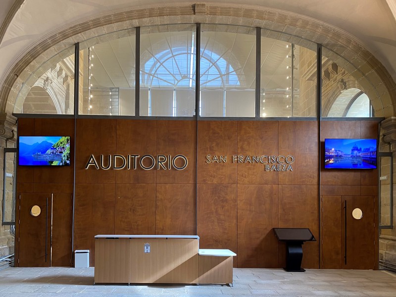 Las obras de rehabilitación y mejora prosiguen. La primera fase para la restauración del auditorio finalizó en marzo de 2022 y dotó al edificio de todo el equipamiento necesario para impulsar el turismo de congresos en Baeza. En esta fase también se eliminaron las humedades que afeaban la piedra. La mezcla de la modernidad de las pantallas, el escenario y los equipos de iluminación y sonido no emborronan el estilo y la tradición del convento de San Francisco, sino que lo adaptan al siglo XXI.